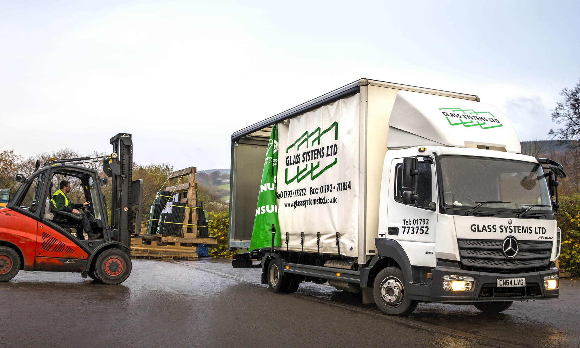 Glass Systems distributes its products on special stillages to job sites and warehouses throughout Wales and southern and central England, as far north as Manchester and South Yorkshire.